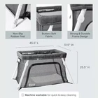 This is the Guava Lotus Lightweight Travel Crib and Portable Baby Playard Backpack in black. It is a playpen suitable for infants and toddlers. The playpen is portable and can be used for travel. It features a unique backpack design for easy transportation. 1 Side Zipper door for Better Connection Unzip the lockable side door, help your little one fall asleep or turn the travel crib into a crawl-friendly playard. 2 Sturdy, Ready-for-Play (and Toddlers) Frame The aluminum frame and overbuilt hinges will stand up to years of toddler and travel abuse. 3 Mattress for Your Little One: An insulated, waterproof mattress made out of high quality padding for more comfort and protection. We’ve used one for years with our own kids and are a big fan of the ease of setup and ability to quickly be packed!