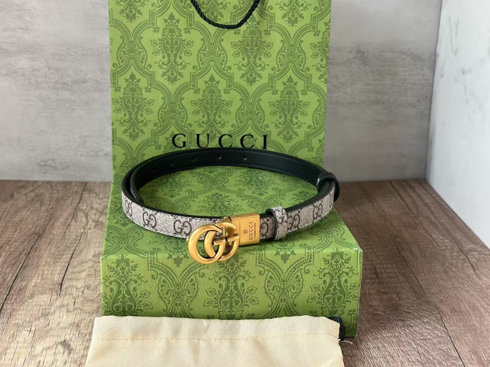 $ 97.71Authentic GUCCI Brown Canvas Leather Belt with Double G Buckle Made in Italy