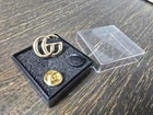 Add a touch of luxury to your outfit with this vintage Gucci GG small golden employee brooch lapel pin. Great for hats, ties, scarves, shirts, jackets, etc. Jewelry case included (pictured) message with any questions!