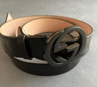 Gucci GG Black Buckle Shiny Monogram Leather Belt 105 cm Fit's 36/38 waist, in Excellent Condition comes with BOX ,Dust Bag and Tags.