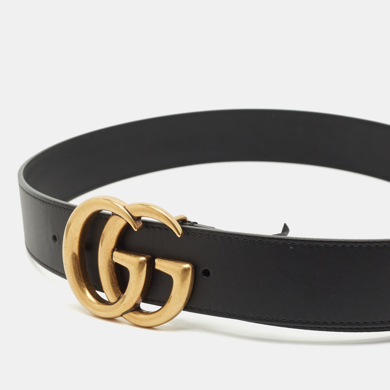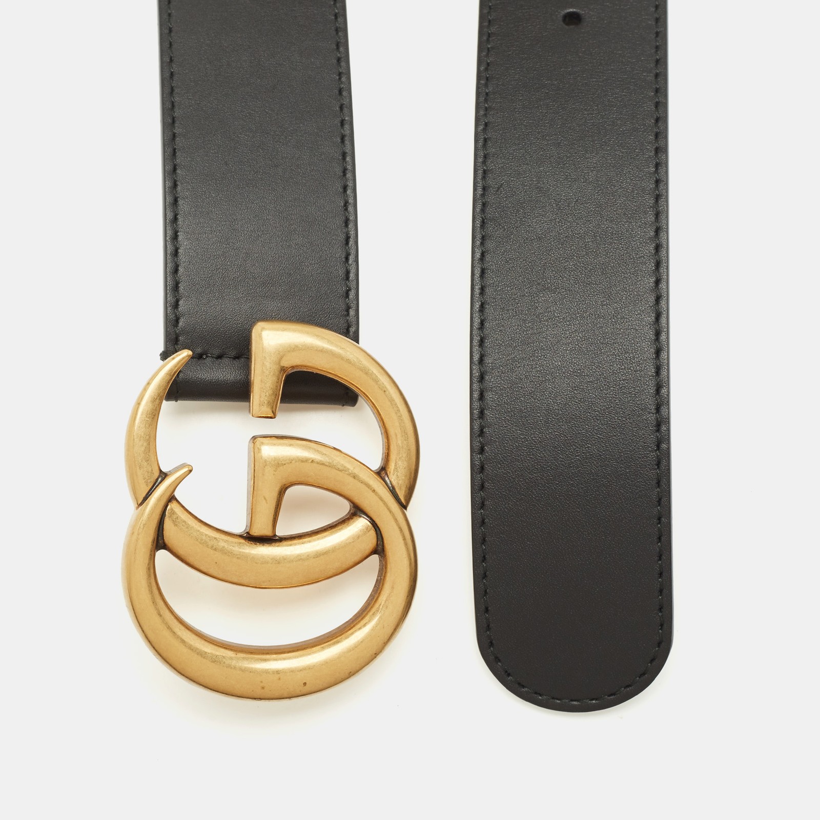A power piece from Gucci’s coveted Marmont line, this wide black leather belt boasts a bold antique gold tone GG buckle. Measuring 95CM, it’s the ultimate statement accessory to define your silhouette and elevate everything from denim to dresses.Certified by The Luxury Closet - This item has gone through a detailed authentication process overseen by our experts. We offer a lifetime guarantee of authenticity on all our items. Import duties, taxes and charges are not included in the item price. These charges are the buyers responsibility. Please check with your country’s customs office to determine what these additional cost will be prior to buying. Our eBay Store About Us Contact Us Add to Favorite Sellers Gucci Black Leather GG Marmont Wide Buckle Belt 95CM $295.9 A power piece from Gucci’s coveted Marmont line, this wide black leather belt boasts a bold antique gold tone GG buckle. Measuring 95CM, it’s the ultimate statement accessory to define your silhouette and elevate everything from denim to dresses. Product Details Brand Color Black Dimensions Material Leather Size 95CM Outsole Width Outsole Length Heel Height Includes Certified by The Luxury Closet This item has gone through a detailed authentication process overseen by our experts. We offer a lifetime guarantee of authenticity on all our items. How We Check The in-house team of experts at The Luxury Closet is highly trained to verify the authenticity and the condition of the luxury products. They ensure that only 100% authentic items are put on sale.The evaluation process is unique with its own mix of assessment criteria and differs according to the category. Each item is evaluated based on the following combination of hallmarks, hardware, stitching, symmetry, material, craftsmanship, stamping, codes, hologram stickers, and packaging. Our authenticators also check if the items have been modified or amended (e.g., aftermarket diamonds, replaced batteries, repaired bags, etc.) International Buyers Import duties, taxes and charges are not included in the item price. These charges are the buyers responsibility. Please check with your country’s customs office to determine what these additional cost will be prior to buying.