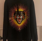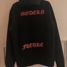This Gucci Modern Future hoodie is the perfect addition to any stylish wardrobe. Featuring a sleek black color and the iconic black cat character, this pullover hoodie is sure to turn heads. Made in Italy, this hoodie is of high quality and is available in a size small. The hoodie is designed for regular size and is perfect for men and women who love activewear. It is a must-have for anyone who wants to show off their love for Gucci and cats. Get your hands on this Gucci Modern Future Angry Cat Black Hoodie now and elevate your style game! Estimated retail $1500. Please note drawstring at hood missing 1 metal end. Minor signs of wear reflected in price.