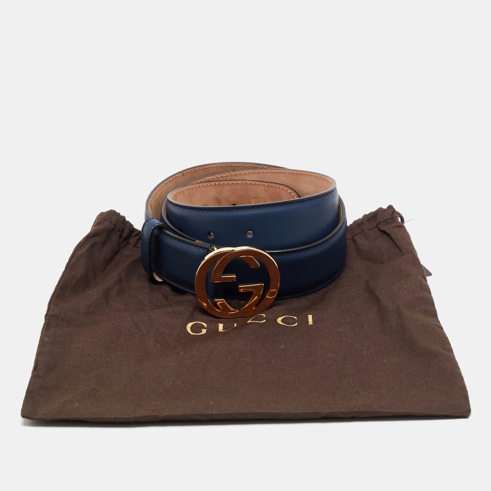 This Gucci belt is crafted in navy leather and finished with the house’s iconic interlocking G buckle. Understated yet instantly recognisable, it lends a refined edge to trousers or cinched dresses.Certified by The Luxury Closet - This item has gone through a detailed authentication process overseen by our experts. We offer a lifetime guarantee of authenticity on all our items. Import duties, taxes and charges are not included in the item price. These charges are the buyers responsibility. Please check with your country’s customs office to determine what these additional cost will be prior to buying. Our eBay Store About Us Contact Us Add to Favorite Sellers Gucci Navy Blue Leather Interlocking G Buckle Belt 80 CM $412.5 This Gucci belt is crafted in navy leather and finished with the house’s iconic interlocking G buckle. Understated yet instantly recognisable, it lends a refined edge to trousers or cinched dresses. Product Details Brand Color Navy Blue Dimensions Material Leather Size 80 CM Outsole Width Outsole Length Heel Height Includes Certified by The Luxury Closet This item has gone through a detailed authentication process overseen by our experts. We offer a lifetime guarantee of authenticity on all our items. How We Check The in-house team of experts at The Luxury Closet is highly trained to verify the authenticity and the condition of the luxury products. They ensure that only 100% authentic items are put on sale.The evaluation process is unique with its own mix of assessment criteria and differs according to the category. Each item is evaluated based on the following combination of hallmarks, hardware, stitching, symmetry, material, craftsmanship, stamping, codes, hologram stickers, and packaging. Our authenticators also check if the items have been modified or amended (e.g., aftermarket diamonds, replaced batteries, repaired bags, etc.) International Buyers Import duties, taxes and charges are not included in the item price. These charges are the buyers responsibility. Please check with your country’s customs office to determine what these additional cost will be prior to buying.
