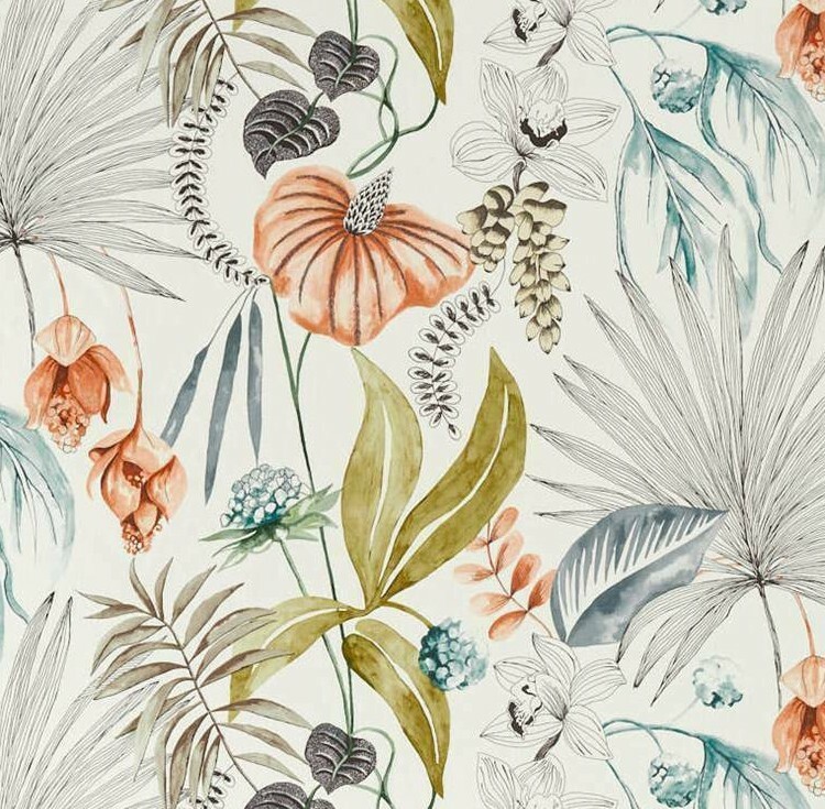 HARLEQUIN FABRIC FROM MIRADOR DRAPERY COLLECTION DESIGN IS CALLED HABANERA CORAL/HARBOUR/LIME COLOURWAY PATTERN REPEAT 62.5 cm HALF DROP YOU ARE BUYING A PIECE OF FABRIC APPROXIMATELY 3 METRES IN LENGTH 1.37 METRES WIDE. 90% COTTON 10% LINEN SUITABLE FOR CURTAINS,BLINDS OR CUSHION COVERS