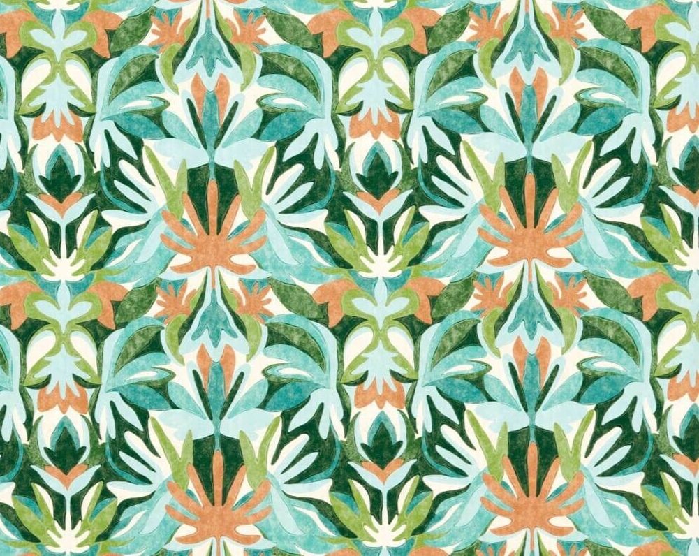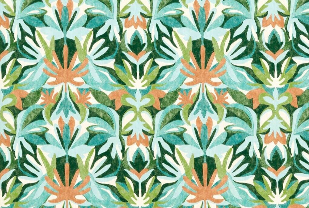HARLEQUIN FABRIC FROM THE OUTDOOR FABRIC COLLECTION DESIGN IS CALLED MELORA FIG LEAF/PAPRIKA/AZUL COLOURWAY PATTERN REPEAT 38.6 cm YOU ARE BUYING A PIECE OF FABRIC APPROXIMATELY 2.3 METRES IN LENGTH 1.38.2 METRES WIDE. 100% POLYESTER SUITABLE FOR CURTAINS,BLINDS OR CUSHION COVERS PLEASE NOTE THAT THE MAJORITY OF MY FABRICS WILL COME FOLDED