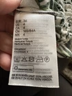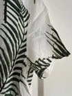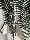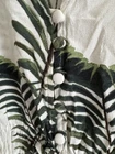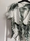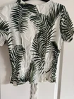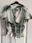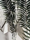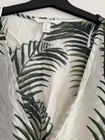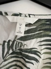Elevate your wardrobe with this stunning H&M ladies blouse, perfect for any occasion. The white and green palm leaf print is complemented by a V-neckline and short sleeves, giving a stylish and trendy look. The blouse features a button and tie closure, with an elasticated waist and double bow accents for added style. Made from viscose jersey fabric, this blouse is lightweight and breathable, with a slimming and moisture-wicking effect. It's easy to care for and suitable for all seasons, making it a versatile addition to your wardrobe. This blouse is perfect for travel, weddings, parties, casual wear, formal events, workwear, and business settings.