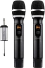 HOTEC Wireless Microphone, Metal Dual UHF Dynamic Handheld Microphone System for Karaoke, Singing, Speech (H-U26) FULL COMPATIBILITY: Connect the receiver to the 1/4” mic input of your sound device for voice amplifying. If your sound system is 3.5mm mic input, use the enclosed 3.5mm to 6.35mm adapter. Volume will be adjusted from the audio device end. SUPPORT RECORDING ON SMARTPHONES: This wireless microphone system comes with a 3.5mm adapter and the headphone splitter, you can connect this system with your iPhone or Android smartphones, tablet, laptops for recording on Facebook or Youtube. STAGE SOUND QUALITY: High quality sound transmission, clear voice and without feedback, free from distortion. This handheld wireless microphone is designed for vocal use in live performance, sound reinforcement, and studio recording. EASY SET UP: Plug and play. Battery-powered microphones (by 2 x AA battery) and wireless mini receiver (by rechargeable lithium battery) offers great freedom of movement on stage or in the room. You can have several sets working together. MULTI-USE APPLICATIONS: Perfect choice for karaoke party, DJ, wedding host, church, business meetings, classroom activities, outdoor or onstage performances or recording using iPhone/Android smartphones, tablets, laptops from Facebook, Youtube.