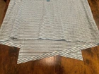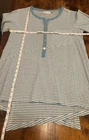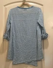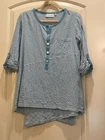 Dive into effortless style with the Habitat " Clothes to Live In" women's tunic blouse, a delightful blend of comfort and chic aesthetics. The aqua blue and white striped pattern exudes a playful yet classic vibe, perfect for casual outings or your travel adventures. With a round neck and 3/4 casual sleeves, this tunic offers a relaxed fit that's both flattering and easy to wear. The blouse features a unique button-front closure, adding a touch of sophistication to the simple yet stylish piece. Crafted from a soft mix of cotton and spandex, it promises all-day stretch for a comfortable fit. The asymmetrical hem and additional button accents on the sleeves add an element of surprise and contemporary flair to this colorful garment.
