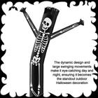Features: Attract Customers: This dynamic skeleton inflatable tube man is a fun way to help you gather popularity and attract crowds. Whether it's a shopping mall event, holiday celebration, or Halloween-themed event, it can quickly drive the atmosphere of the scene and make the activities full of joy and vitality. Easy to : Our Halloween skeleton inflatable dancing tube man is collapsible and compact when deflated, allowing it to be easily put into your storage bag. Whether it's for warehouse storage or event transportation, it's easy to help you solve the problem of large decorations storage. Specifications: Material: nylon Color: black, white Size: about 20 ft in height Package includes: 1 x Halloween skeleton inflatable tube man Note: Manual measurement, please allow slight errors in size. The color may exist a slight difference due to different screen displays. Package Contents: you will receive 1 Halloween inflatable skeleton tube man (blower not included); Featuring a striking white skeleton pattern on a black base, it delivers visual impact-ideal for Halloween decorations to create a spooky atmosphere Large Size Design: this inflatable skeleton tube guy stands at an impressive 20 ft (approx. 6 meters) when fully inflated; Its large size allows the skeleton to dance in the wind with lifelike movements; The dynamic design and large swinging movements make it eye-catching day and night, ensuring it becomes the outdoor Halloween decoration Easy Setup: the spooky Halloween inflatable skeleton tube man comes with an 18-inch universal self-adhesive strip at the base, with most blowers of the same size; The adhesive ensures stable standing, keeping the dancer firmly in place even in windy conditions Material Description: made from a quality, reliable fabric, our black Halloween wacky inflatable skeleton tube guy is built to last; It resists tearing and withstands outdoor conditions, ensuring long-term use without damage-ready to celebrate many Halloween seasons with you Versatile Application: whether placed in your yard, at the front door, in a shopping mall, or at a Halloween party, this dancing skeleton tube man can easily cope with it; Its wacky swaying movements amplify the spooky and festive Halloween atmosphere, creating unforgettable memories for everyone