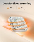 All-around Warming Up Quickly: The hand warmers heat up double sides quickly and keep your hands and fingers warm; The heating temperature can reach 122-131°F in seconds after the portable hand warmer is powered on Long-lasting Rechargeable Hand Warmer: The electric hand warmer keeps warm for 3-4 hours and fully charged in 2.5-3 hours; One charge lasts a pretty reasonable time; Clear green/red lights to indicate charge Pocket Warmer with Flashlight: The LED flashlight is a perfect additional feature of the hand warmer rechargeable; It is really helpful for finding things in the car, bag, purse, also good to have out the night or camping trips Wrist Strap and Palm Size: You can hang the hand warmers by a strap in pocket, bag, gloves, keychain, backpack; Lightweight and portable, great for watching sporting events, walking dog, running, shopping, etc; Best hot hands hand warmers for on the go Smooth Texture and Perfect Gifts: Nice outer coating and smooth matte texture on the handwarmers are very pleasing to touch; Cute design make it great gifts for women and men at Christmas, Thanksgiving Day, Mother's Day, Valentine's Day, birthday Product Description 1 Soft Touch 2 2-in-1 Button 3 Safer to Use Compact And Portable Wrist Strap Hang it on your wrist and put it on your pocket Pocket Size Easy to carry, not take up any space Perfectly Fit Your Gloves 1 Gifts for Women/Men 2 Walking A Dog 3 Ourdoor 4 Camping 5 Raynauds