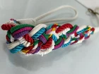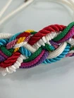 In excellent vintage used condition with no flaws to note! Some use but no damage. Vintage Corded Stretchy Waist Belt Multicolor woven cord/fabric ropes with 1 beaded strip through the belt Gold tone hook buckle Stretchy and flexible; easy to wear and layer Full length: 31" unstretched Full length: 38" stretched Belt width: 1.75" #vintagebelt #womensbelt #handmadebelt #wovenbelt #braidedbelt #woven #braided #muticolor #beaded #handwoven #stretchy #stretchybelt #hookloopbelt