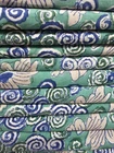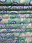Handmade Indian cotton fabric featuring hand-dyed floral block prints. Sold in lots with each unit measuring one meter (40" x 44"). Suitable for various apparel, accessories, home decor, and crafting projects. Light weight and 45" wide, this fabric is ideal for sewing unique garments and decorative items with an authentic Indian touch.