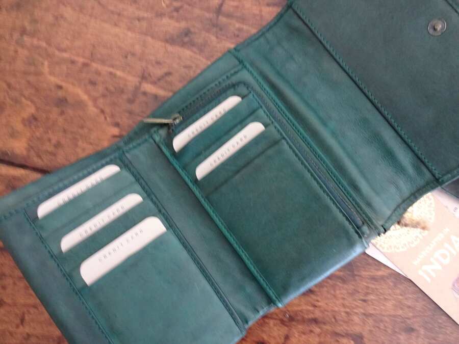 HANDCRAFTED ARTISAN DARK GREEN WOVEN SOFT LEATHER CLUTCH TRIFOLD WALLET Trifold clutch organizer wallet handcrafted by artisans in India...featuring dark green soft leather with a vintage inspired woven front flap. Comes brand new with attached makers tag. Special features include: * Snap flap closure * Interior features 9 credit card slots, 3 slip pockets, 1 deep full length slip pocket, and a zippered coin pouch * One zippered exterior pocket * Measures approx. 6"x4" x1" Smoke and pet free Customer satisfaction is a top priority. Please contact me within 3 days of receiving your item if there is a problem. If for any reason you decide to return your purchase, please read the following details of my return policy. Item must be returned within 30 days of receiving the item. Items must be returned in unopened packages as received. Linens can pick up lint, odors, hairs, pet hairs, stains, etc. so I do not accept the return of any items that have been removed from packaging and then refolded back in. Also, color variations can occur from one monitor to another and cannot be used to say that an item is not as described. If you are returning because the color is not as you thought, the reason will be considered as buyer's remorse. For items returned due to buyer's remorse, buyer pays for return shipping. Feedback will be given following your receipt of item(s) and your posting of a positive transaction experience. I am not an authorized distributor nor a representative for any of the designers or labels I offer. However, I can guarantee 100% authenticity as I buy from major department stores and retail outlets. All items are brand new and first quality, unless otherwise noted. Thank you for your consideration! See my other listings for more great items! Immediate payment required. Shipping method will be the most economical based on the zip code of buyer. Order will ship within 24 hrs of purchase. Tracking will be uploaded to buyer's transaction page. There will be a surcharge if you are shipping to Alaska, Hawaii, Puerto Rico or any US territory outside the continental USA. txzj pxzj24 txzj-11 txzj19 txzj115