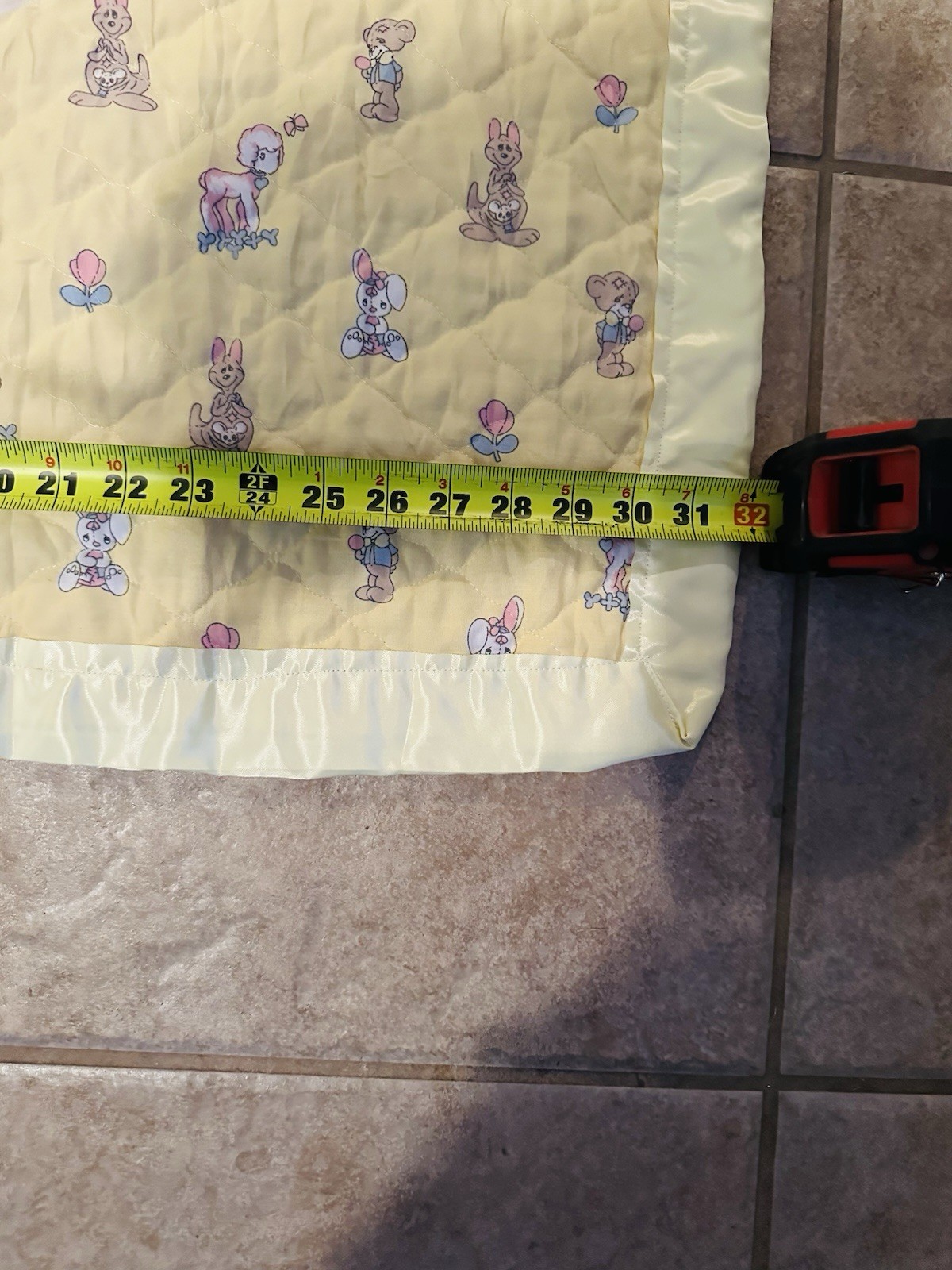 This handmade baby blanket by Precious Moments is a charming addition to any nursery. Featuring adorable animal and cherub motifs, this multicolored quilt is perfect for fitting in a crib. With a unisex design, this unique blanket is sure to bring warmth and joy to any little one's room. No returns