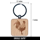 Handsome Rooster Chicken Engraved Wood Square Keychain Tag Charm