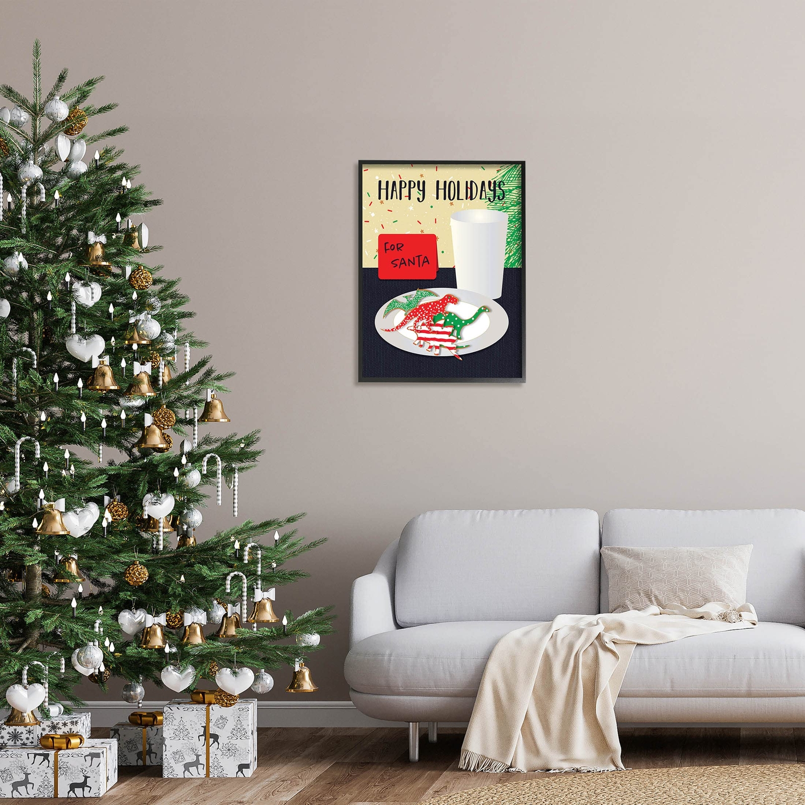Our Framed Giclee Wall Art adds a touch of class to any space in your home or office. Frames are available in three alluring styles: black, gray farmhouse and white. Our textured artwork will add more depth and dimension to any space. Each piece is mounted with a 1.5 inch thick wood grain frame that is ready to hang! Looking for a statement piece? We have oversized artwork available. Framed Giclee Sizes Include Standard: 11 x 1.5 x 14 Large: 16 x 1.5 x 20 Oversized: 24 x 1.5 x 30 Wall Art is Ready to Hang - No Installation or Hardware Needed. For Easy Set Up Lean or Layer Artwork on Shelf or Against Wall. Our giclée prints are carefully mounted on a durable MDF backing, and then perfectly finished in a 1.5 inch thick woodgrain frame. Mounted frame colors include black, gray farmhouse and white. Made In USA. Artwork Relates To: Milk, Cookies, Santa, Holiday, Christmas, Pattern Design by Linda Birtel