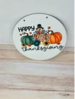 Happy thanksgiving Doorhanger 11.75 inches. Its white on the front and the back is a wooden finish great to hang outdoors.