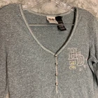 Good Pre Owned condition. There is some studs missing on the front logo and the back logo. Please see photos for details. SUPER FAST SHIPPING!!! We ship next business day! If you aren't happy with your purchase we offer 30 day FREE returns. No questions asked! Harley Davidson Women Studded Spellout Biker Long Sleeve Henley Thermal Shirt M