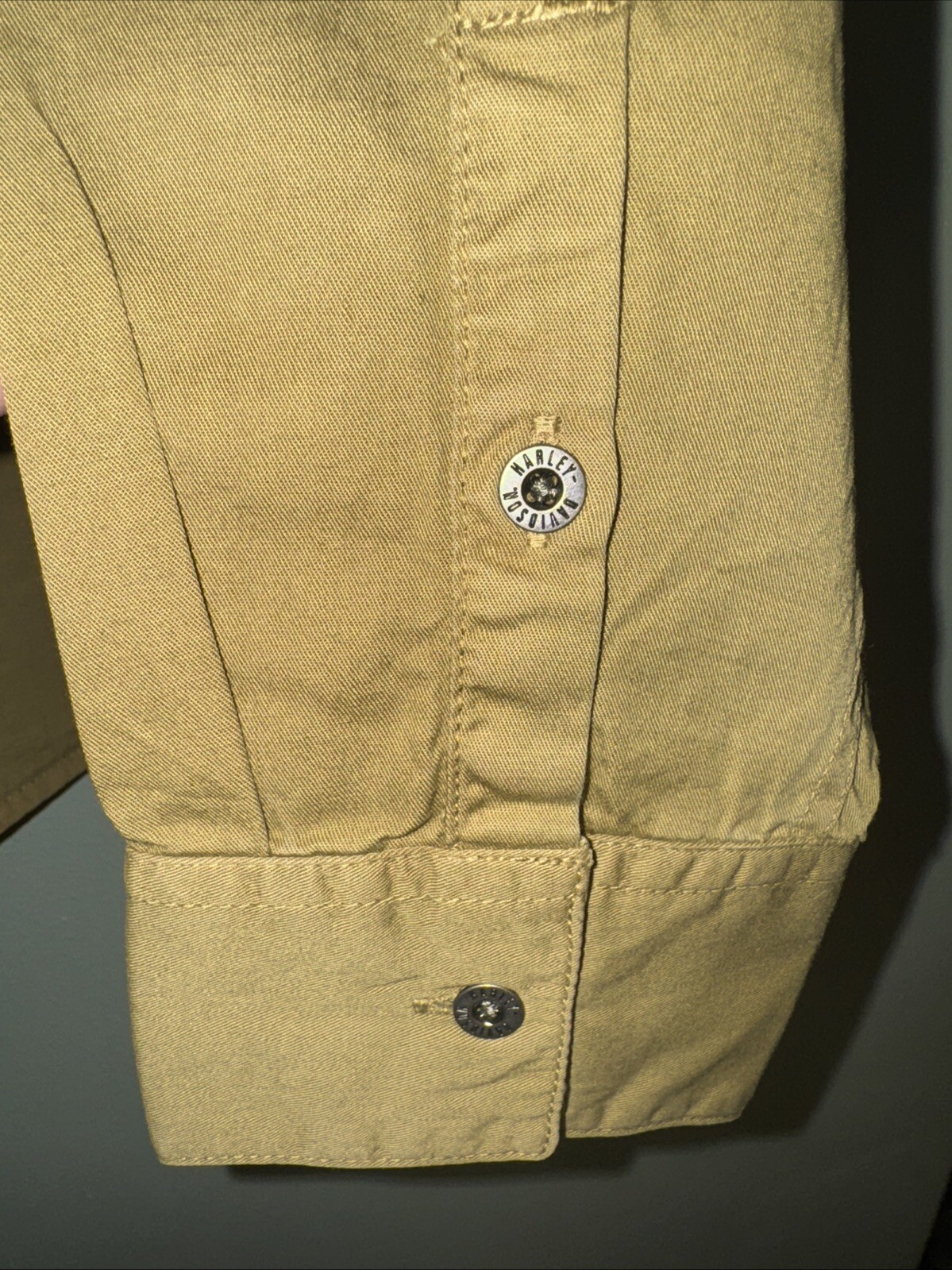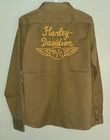 Harley Davidson women’s XL studded on the shoulders woven olive green shirt. NWOT