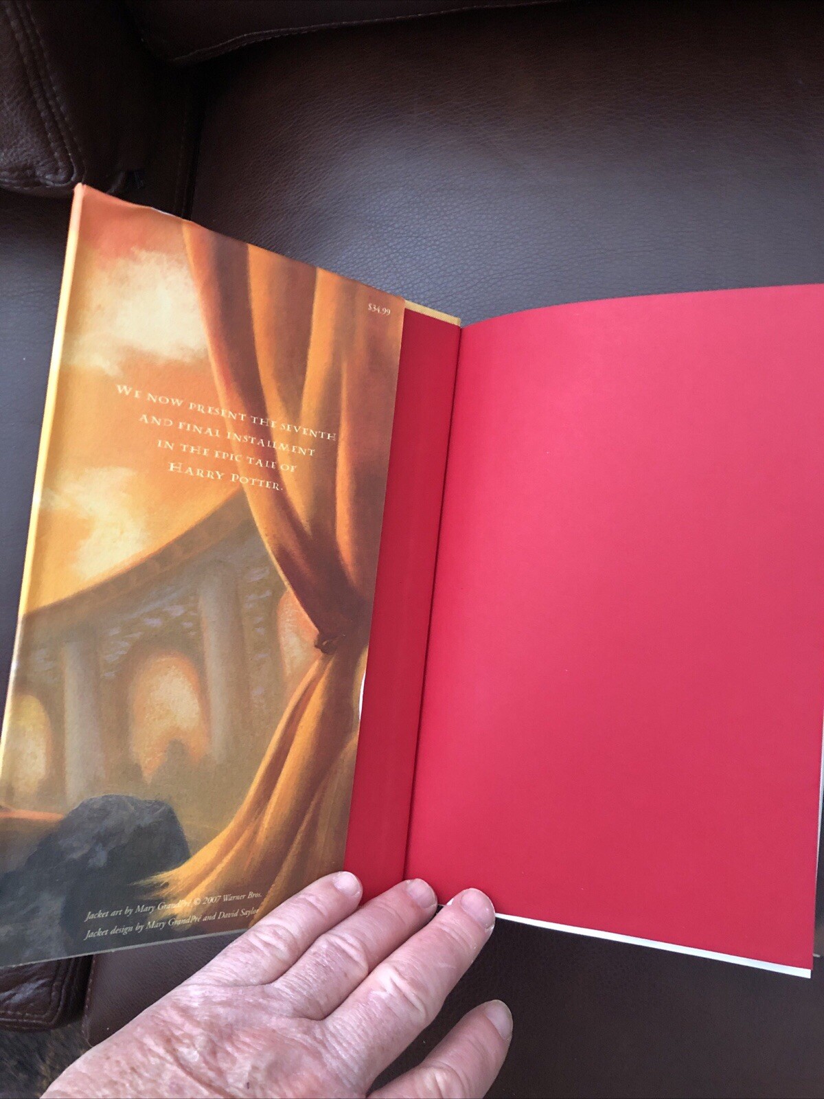 "Harry Potter and the Deathly Hallows" is a first edition hardcover novel by J.K. Rowling, part of the Harry Potter series. Published in 2007 by Scholastic, it features fantasy, magic, and adventure themes in a European setting. This edition contains 759 pages, measuring 9in x 6in x 2in and weighing 32.1 oz. It is intended for young adults and adults, and is a sought-after collectible due to its first print status. Slight tear on the back of the dust jacket. Some folding of the dust jacket on the inner sleeve on the back of the book.