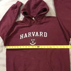 Harvard Hoodie Adult Medium Red Heavy Cotton Blend Gildan Fleece Lined There is a light small spot on back. Hoodie does not have drawstrings. Please see pictures for details and measurements.