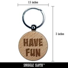 Have Fun Cute Text Engraved Wood Round Keychain Tag Charm
