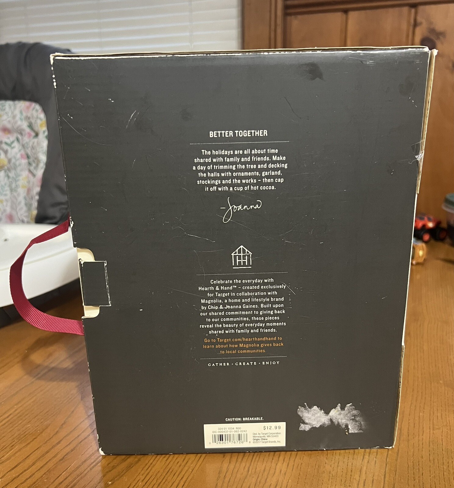 Hearth and hand with magnolia bulb ornaments. White with black X's. Open box. Adorable addition to your simple style tree or other decor for the holidays.