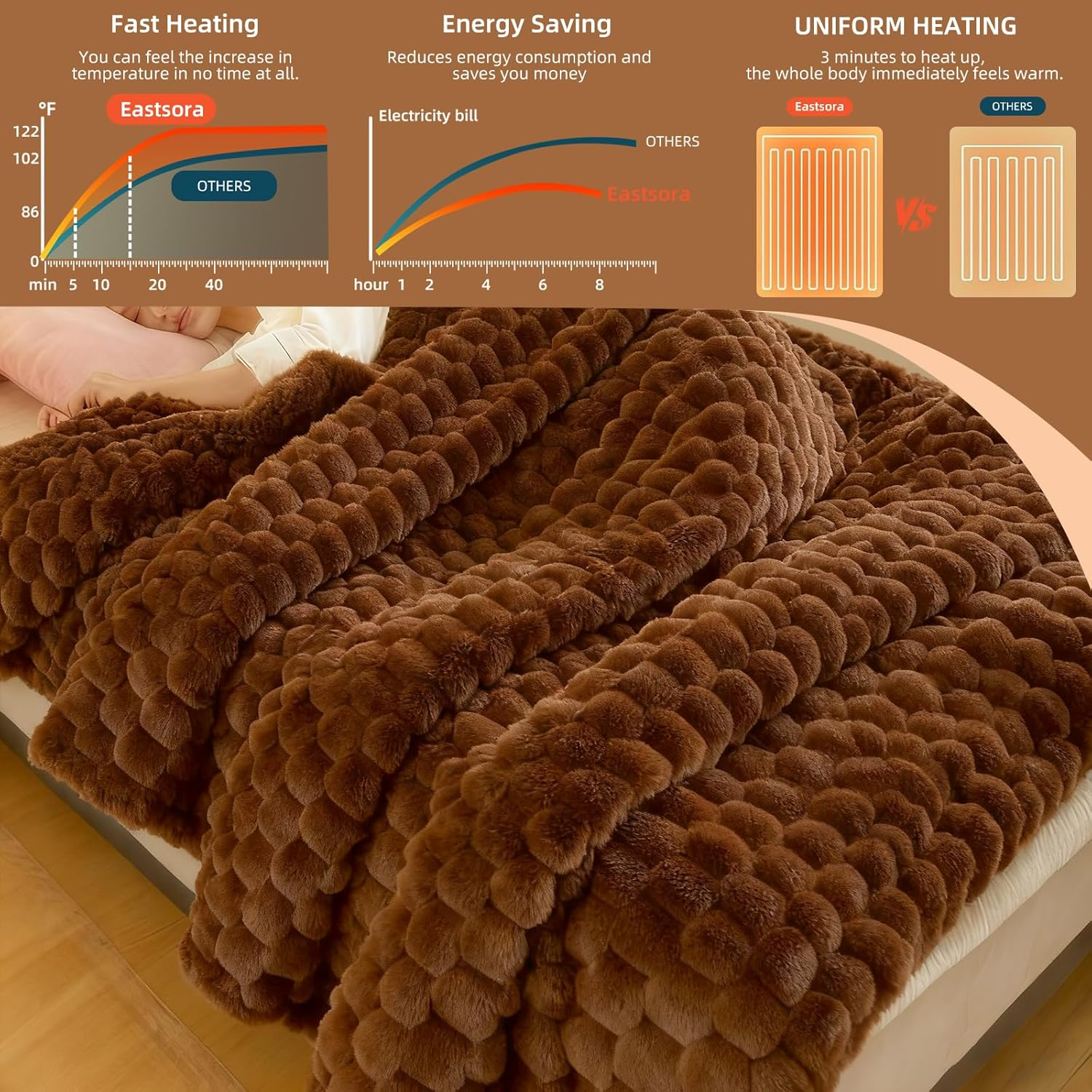 Store New Arrivals Add to Favorite View Feedback Contact Heated Blanket Throw 50" X 60" Soft Ribbed Faux Fur Flannel Fast Heating 12 Heat Levels 1–12H Timer & Overheat Protection & Auto Shut-Off & ETL FCC & Machine Washable Heated Throw Description Item model number DRT-GGQ-F Style Modern Number of Items 1 Pattern Solid Blanket Form Throw Blanket Theme Christmas Unit Count 1.0 Count Product Dimensions 60"L x 50"W Material Faux Fur, Plush Flannel Fleece Model Name DR-GGQ-KF Seasons All, Fall, Spring, Winter Included Components 1 × Electric Heated Blanket (90'' × 100''), 1 × Packaging Box, 1 × User Manual, 2× LED Controller Age Range (Description) Adult Item Weight 4.22 pounds Fill Material Faux Fur, Plush Flannel Fleece Special Feature Precision HeatSync™ Technology Fabric Warmth Description 3-Minute Fast Heating Color Camel Recommended Uses For Product Camping, Hiking, Napping, Reading, Travel Fabric Type Faux Fur Product Care Instructions Machine Wash Size Single - 50" x 60" 🔥【Safe & Reliable Electric Heated Blanket】 The Eastsora Heated Blanket Throw is ETL and FCC certified for trusted safety and performance. Each blanket undergoes strict quality testing to prevent electrical hazards and reduce electromagnetic interference. Designed with low-EMF radiation, this electric throw blanket delivers safer, healthier, and more reliable warmth for you and your family — perfect for year-round comfort. 🔥【Luxuriously Soft & Cozy Dual-Sided Warmth】 Made with 320GSM premium faux fur on one side and 200GSM flannel fleece on the other, this soft plush heated blanket offers a luxuriously smooth touch and soothing warmth from both sides. Ideal for your bed, sofa, office, or home décor, it brings a modern, high-end look while keeping you comfortably warm. Reinforced stitching ensures long-lasting durability and everyday use. 🔥【Fast Heating with 12 Adjustable Levels】 Experience instant warmth in seconds with our advanced fast-heating system. Featuring 12 customizable temperature settings (1–12), this electric throw lets you fine-tune your comfort with precision. The smart heat control ensures even warmth, energy efficiency, and perfect adaptation for all seasons. 🔥【1–12 Hour Timer & Auto Shut-Off Safety】 Enjoy peace of mind with the 1–12 hour adjustable timer and auto shut-off protection. The heated blanket automatically powers down when time is up, preventing overheating and saving energy. It’s an ideal choice for overnight use or cozy relaxation during long winter evenings. 🔥【Easy to Use & Machine Washable】 Designed for simplicity and comfort, the LED controller includes preheat, timer, and temperature controls for effortless operation. The detachable power connector makes this machine-washable electric blanket easy to clean — keeping your flannel fleece and faux fur soft, fresh, and ready for daily use at home or on the go. 🔥【Portable Design for Home & Travel】 This lightweight and foldable heated throw blanket is easy to carry and store, making it perfect for home, office, car, or travel use. Whether you’re relaxing on the couch, reading at your desk, or keeping warm on a road trip, it delivers cozy warmth anywhere you go. Enjoy comfort and convenience wherever life takes you. Product description Eastsora Electric Heated Blanket – Luxurious Warmth Meets Smart Comfort ABOUT US We offer the best prices around on high quality products. Our E-store includes media such as books, movies, music and games while offering electronics, toys, sporting apparel, clothing, tools, general home, garden items and more. SHIPPING We are always working hard to ensure your package arrives as soon as possible. Please understand that some factors like weather, high postal traffic, and the performance of shipping companies are outside of our control. We offer free shipping to the lower 48 states and ship within 2 business days of payment, usually sooner. We do not accept P.O. Boxes. Please provide a physical address. For shipping outside of the continental USA, we only use eBay's Global Shipping Program.The item is shipped to KY and then sent to the rest of the world. International customers are responsible for all duties and taxes. Continue to check out in order to calculate costs for shipping the item to your country. Messages regarding eBay's Global Shipping Program MUST be directed at eBay EXCLUSIVELY. RETURNS We offer a 30-Day Return Policy on items which you are not completely satisfied with. You have the option for a full-refund or an exchange of the item. No returns are available on items shipped outside of the USA. PAYMENT We accept PayPal. CONTACT US This page content is yet to come Please ad us to your favorite seller and visit again later Thank You CUSTOMER SATISFACTION We try our very best to make sure every customer is completely satisfied. If there's a problem, message us! We're happy to help. WE ACCEPT Copyright © 2021 AutoDS. | All Rights Reserved