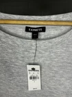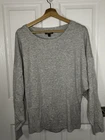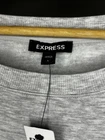 This is a heather grey Express women's sweater in size L with a scoop neck and long dolman sleeves. It features an open lower back design and the fit is looser on top and tapering to a more fitted waistline. New with tags.
