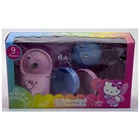 This 9-piece cookware set is perfect for kids who love to cook and play with Hello Kitty. The set includes stainless steel pots and pans in various sizes, all adorned with the iconic Hello Kitty character. The pink color adds a fun touch to the kitchen and is sure to delight young chefs. The set is suitable for children aged 4-7 and is part of the Hello Kitty character family. It is a great addition to any kitchen or playtime toy collection. Let your child's imagination run wild with this fun and functional cookware set. Hello Kitty 9-Piece Stainless Steel Cookware Set for Kids Contents: 1 diameter stock pot 2 pans 2 lids 1 slotted spoon 1 ladle 1 spaghetti fork 1 spatula