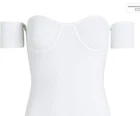Helmut Lang Pinched Contour Cold Shoulder Top Size Medium NWT 265 The Contour top from Helmut Lang will suit many an occasion. The ribbed-knit style has a sweetheart neckline, supportive underwired cups, and attached off-shoulder sleeves. Material: 35% polyester, 7% nylon, 57% viscose, 1% elastane Made in China Care instructions: dry clean Underwired cups Item number: P00651401