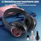 Headband Bluetooth HeadsetWireless Bluetooth Headset Over-Ear Headset Luminous ★SPECIAL TIPS: √ Ship within 24 hours Via USPS from NJ ,USA √ 100% New & Excellent Quality √ Professional Customer Service √ Strictly QC, Each set was fully tested before shipping √ Offer delivery with Tracking Number Product Features 1.Foldable Design: Headband Bluetooth Headset with foldable design, easier to put into a pocket, bag or other small storage space, can greatly reduce the occupied space. 2.Bluetooth 5.3 chip: The Over Ear Headset adopts Bluetooth 5.3 chip, faster and more stable connection, listening to songs and playing games more clearly. 3.Comfortable to The Ear: The Bluetooth Headset is made of soft protein leather, breathable and comfortable, even if you wear them for a long time, you won't feel booming head or discomfort. 4.High-Quality Sound Quality: Wireless Headset using acoustic cavity + digital enhancement technology, presenting surging three-dimensional sound, as in the concert scene. 5.Equipped with 3.5mm Audio Cable: When the Over Ear Wireless Headset is low on power or you want a more stable audio transmission, you can use the 3.5mm audio cable to connect the headset directly to audio devices (such as cell phones, computers, etc.) for wired transmission. Product Parameter Bluetooth Version: V5.3 Transmission Distance: 10 meters Battery Capacity: 400 mAh Charging Time: about 1.5 hours Standby Time: 80 hours Mode of Use: bluetooth/card/wire insertion Power Input: DC 5V Color: black Material: ABS Size: 18.5x18.5cm/7.28x7.28in Products Include 1x Earphone 1xUSB cable 1xAudio Cable