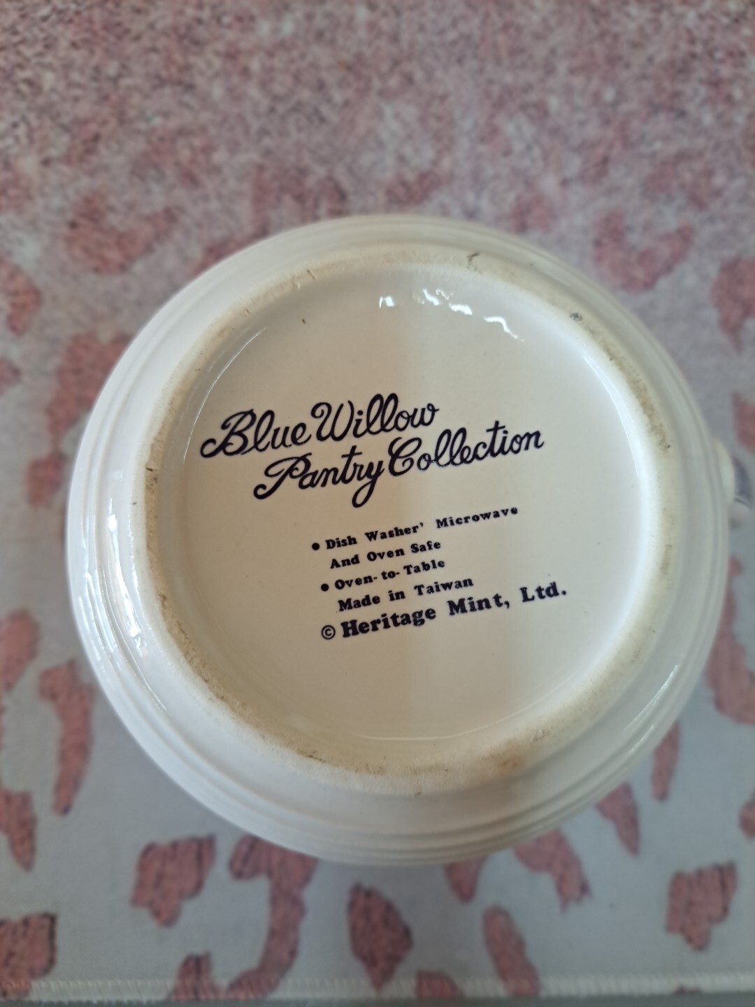 The Blue Willow Pantry Collection Soup Mug by Heritage Mint Ltd is a vintage coffee mug set made of ceramic and porcelain in a traditional Blue Willow pattern. This set includes a pitcher and is suitable for hot or cold beverages. It is an original design from the Willow Pantry Collection, featuring a classic blue and white color scheme. The unisex adults can enjoy this timeless piece for all occasions, adding a touch of elegance to any kitchen or dining setting.