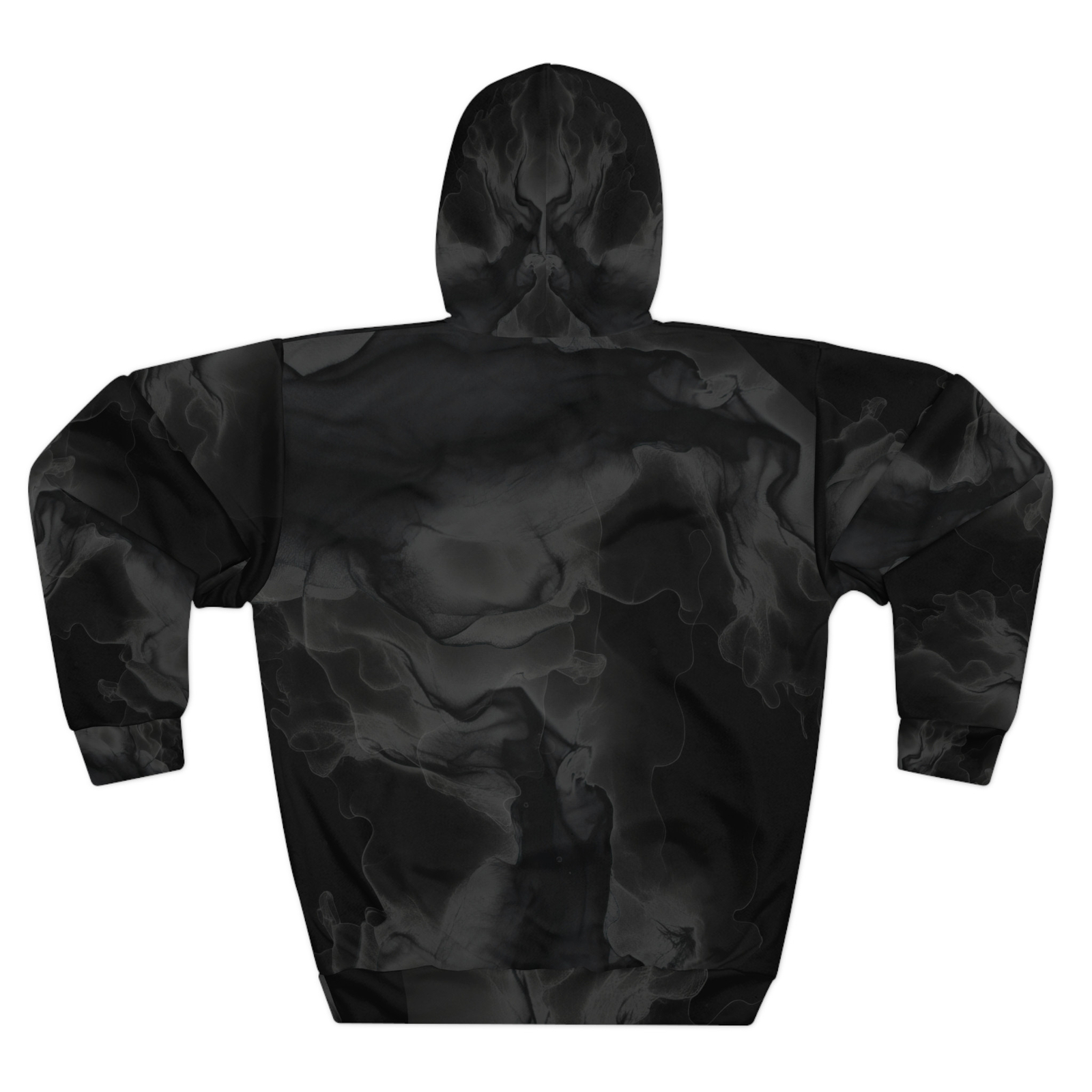 This Pullover Hoodie is made for warmth and comfort. Made to be easily customizable without white lines at the seams, this all-over print pullover hoodie is waiting for you to add a great design and it instantly becomes fashionable. It features a large front pocket, a hood with a drawstring, and is custom cut and sewn. .: 100% polyester .: Medium weight fabric: 7.4 oz/yd² (250 g/m²) .: Classic Fit .: White thread color .: Custom cut and sewn .: Assembled in the USA from globally sourced parts