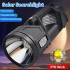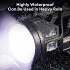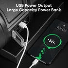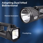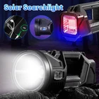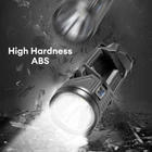 Features: 1. SAFETY WARNING LIGHT: Not only lighting, but also can be used as an emergency red and blue warning light to ensure safety. 2. Our torch has two charging modes: solar charging and USB charging. SOLAR CHARGING: Equipped with a solar panel, it can be quickly charged at any time as long as there is weak sunlight.USB CHARGING: There is a USB charging port on the side of the flashlight, which can be connected to computers, cars, and power outlets for charging. 3. USB Power Output, High Capacity Charger:Allow you to enjoy outdoor life overnight without worry, charge your camera, mobile phone, laptop and other devices on the go. 4. Strong light design high power wick: extra large light cup, strong light gathering ability, long-distance shooting ability, large wide-angle irradiation range. Brightness up to 1800lm, can light up half a football field, rechargeable spotlight flashlight suitable for camping, road adventure, night work. 5. HIGH QUALITY MATERIAL ABS: The LED torch rechargeable is made of high-strength engineering ABS plastic with fully enclosed structure. The torch is protected from splashing water from all angles. 6. Three compartments power display: real-time power display, keep track of the battery power, and charging indication function. Model No.: Large Specification: Bulb: P70 + 35pcs white LEDs +5 red 5 blue LEDs Lumens: Headlight white light strong 1800Lm, headlight white light weak 800Lm Tail light white light strong 400Lm, head light white light weak 120Lm Running time: 3-6 hours Charging time: about 8 hours Function: Headlamp, white/strong-weak-flashing Tail light, white/strong-weak-red-blue flash Solar charging, battery indicator, Type-C port, USB output Battery: 6000mAh Material: ABS+PS Product Size: 155*388*158mm Colour: Black Model: Medium Size Specification: Bulb: P50 + COB Lumens: Head light white light strong 1700Lm, head light white light weak 800Lm Tail light yellow light 500Lm, head light yellow light weak 150Lm Running time: 3-4 hours Charging time: about 4 hours Function: Headlamp, white light/strong-weak-flashing Tail light, yellow light/strong-weak-red-blue flashing Solar charging, battery indicator, Type-C port, USB output Battery: 4500mAh Material: ABS+PS Product size: 108*270*115mm Colour: Black Model: Small Size Specification: Bulb: P50 + COB Lumens: Headlight white light strong 1800 Lm, headlight white light weak 800 Lm Tail light yellow light strong 260 Lm, head light yellow light weak 80 Lm Running time: 3-4 hours Charging time: about 4 hours Function: Headlamp, white light/strong-weak-flashing Tail light, yellow light/strong-weak-red-blue flashing Battery level display, Type-C interface Battery: 3000mAh Material: ABS+PS Product size: 88*223*90mm Colour: Black Product list: Torch *1 USB data cable *1 Attention: Avoid direct contact with eyes!