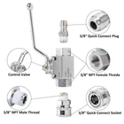 High Pressure Washer Shut Off Valve Kit An Accessory Brings You Convenient and Safe Pressure washer ball valve kit is an accessory that brings you convenience and safe when you need to switch your surface cleaner to a or wand assembly. Rather than running back and forth to your pressure washer machine to shut it down, what you need to do is just turn off the ball valve and change the implements. This pressure washer ball valve is made of high quality stainless steel for durability and rust free. Comes with a 3/8″ quick coupler plug and a 3/8″ quick coupler socket, it is easy to connect and disconnect. With the teflon tape which is included in this kit, this ball valve is a great leak resistance product. Designed to working under high pressure, this ball valve is of the great accessories for pressure washing that you can not miss. Package included: 1 x high pressure ball valve with 3/8” NPT thread. 1 x 3/8” quick coupler plug to 3/8” male NPT thread 1 x 3/8” quick coupler socket to 3/8” male NPT thread 1 x teflon tape Specification: Material: Stainless steel Maxi Working Pressure: 4500 PSI Maxi Working Temperature: 158 degree Fahrenheit. BRINGS CONVENIENCE AND SAFE - The biggest advantage of using a pressure washer shut off ball valve kit is changing the implements safely and conveniently during cleaning. It allows you to switch from your surface cleaner to the or wand assembly without running back and forth to your engine to shut it down and release the pressure in the hose. When you maneuver about cleaning with a wand, it also helps to relieve fatigue. 3/8” QUICK CONNECT - This is a professional pressure washer shut off ball valve kit that includes a ball valve, a 3/8″ quick coupler plug, a 3/8″ quick coupler socket and teflon tape. The set up comes unassembled but it gets assembled very easily. The ball valve fit is designed in a manner to persist high pressures. PREMIUM MATERIAL ENSURES HIGH QUALITY - The shut-off ball valve is made of premium quality stainless steel, housing with stainless steel handle and insert. Great quality stainless steel brings durability and long rust free service life. It can attain maximum working pressure of 4500 PSI and maximum working temperature of 158 degree Fahrenheit. EASY TO USE - The design pattern of this pressure washer shut-off ball valve is constructed in a way that it can sustain high pressure working and provide good leverage under high pressure. The functioning working of this ball valve is very easy as it has quick connecting and disconnecting fitting. It is also easy to turn on and off. SUPERIOR LEAK RESISTANCE - of the great feature of this pressure washer ball valve is its great leak resistance with the teflon tape. With this leak free ball valve, it will definitely save your time and effort when pressure washing.