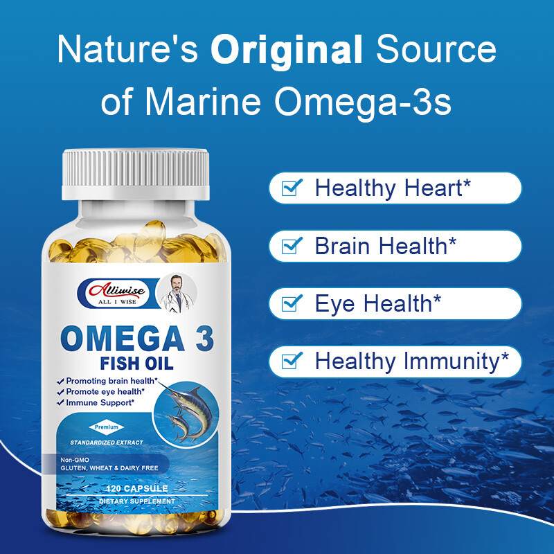 About this Product: Brand:ALLIWISE Item Type:Omega-3 Fish Oil Quantity:120 Capsules Shelf life:2 years FDA Number:11821751536 Features: ✅ SUPER POTENT: Just per serving of our Omega 3 fish oil liquid capsules contains at least 2160 milligrams of Omega 3 fatty acids from wild cold water fish. Our essential fatty acid nutritional supplements are ultra concentrated without the use of harmfully high heat to give you more essential triglyceride fish oil nutrients per soft gel. ✅ ESSENTIAL FATTY ACIDS: Omega 3 fatty acids found in fish oil help support your cardiovascular health, brain function and immune system. The EPA and DHA in our omega 3 supplements act as the ideal brain, heart, and immune support for a healthier, happier you. ✅ SAY GOODBYE TO FISHY BURPS: Our easy-to-swallow softgels have no fishy aftertaste and won\'t cause any fish burps like other lower quality bulk supplements. Our DHA and EPA supplement is non-GMO verified, pescatarian friendly. Our brain and heart support vitamins for adults are the easiest and most convenient one-and-done pure omega 3 daily fish oil supplements. SUPPLEMENT FACTS: Serving Size: 2 Capsules Servings Per Container: 60 Amount Per Serving%DV Calories 36 Calories from Fat 30 Total Fat 3.6g 5%** Cholesterol 36mg 12% Fish Oil 3,600mg + Omega-3 2,160mg + EPA 1,296mg + DHA 864mg + * Daily Value not established. **Percent Daily Values are based on a 2,000 calorie diet. Other Ingredients : Gelatin,Glycerol, Water,NaturalLemon Oil, and Natural Mixed Tocopherols. Contains: Fish (Anchovy). Notice: If you are pregnant or breastfeeding, taking medication, facing surgery, having bleeding problems, or undergoing any other treatment that may affect the ability of blood to clot, consult your doctor before taking this product. 1. This product cannot replace medicine. 2. Children, pregnant women and lactating women should use with caution. 3. Those with bleeding disorders and bleeding tendencies are prohibited. Package Include : 1*120PCS Omega-3 Fish Oil How to use: 2 fish oil capsules per day, one each for lunch and dinner Notes: These statements have not been evaluated by the Food and Drug Administration. This product is not intended to diagnose, treat, cure or prevent any disease. Contact Us & Feedback Your feedback is very important to us. We will leave positive feedback for you as soon as payment is received and hope you will take a moment to do the same for us. If u are satisfied with the item, please be kind to leave us positive feedback and a good rating. If you are not satisfied with the item or you have not received your parcel in the estimated time, we sincerely request from you contact us through the "My Message" section Or "Ask Seller Questions" BEFORE taking critical action. We will try our best to solve the problems to make our customers satisfied. All emails will be cos within 2 business day. If you do not receive our reply, please kindly re-sent your emails and we will reply to you ASAP. Payment The only acceptable payment methods are Payoneer, Credit Debit card & Paypal. Before your payments, please make sure you have a valid/active account. Our shipping services are valid only for verified eBay addresses. Therefore, please make sure to verify your eBay address. Moreover, your verified eBay address and the Paypal registered addresses are should be the same. Shipping We will ship the product about 2-3 days on confirmation of payment. The shipping method is Standard Registered Parcel Post. It includes 100% free shipping for most of our products. Nevertheless, this free shipping method might be changed for heavyweight items because of the huge amount of shipping cost. Returns 100% Satisfaction Guaranteed. We accept product returns within 30 business days from the delivery of the item. If you are not satisfied with the item or its condition, please feel free to contact us before taking action. We will try to solve any dispute and try our best to make our customers fully satisfied.