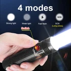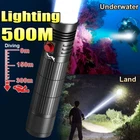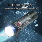 ▶Specifications Material: aviation aluminum alloy 4 Modes: high - low - fast flash - SOS(Long press) Battery: 1 x 18650 rechargeable lithium battery Switch: magnetic switch Waterproof: IP68 Diving Depth: 50 Meters Lumens: 2300 LM Irradiation Distance: 200-300 Meters ▶Functions and Features 1. The Magnetic Switch allows you to operate the flashlight Conveniently (the magnetic switch can better prevent water into the flashlight. It should be NOTED that the switch needs to be Wiped Clean as soon as possible every time you use the flashlight for diving - To Prevent the Switch from Rusting) 2. Diving flashlight is not applicable for charging but we use 18650 Rechargeable battery - Rechargeable batteries can reduce the frequency of battery replacement and greatly reduce environmental pollution. We recommend buyers purchase our kits containing rechargeable batteries. 3. Flashlight has three normal modes: high - low - strobe. In SOS mode, you need to press and hold the switch button for about 3 seconds to turn on. 4. Highest IP68 Waterproof for flashlight allows you to explore freely underwater, and can dive to a maximum depth of 50 meters. 5. There is a hand Rope inside package, you can use it with flashlight underwater. 6. Every time you install the battery and use the flashlight please check whether the flashlight tail is tightened. If it is not tightened and the positive and negative polarities of the battery are in the correct direction, the flashlight will not open normally.