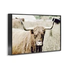 Dimensions: 30 x 1.5 x 20 Framed Framed Giclee Products are available in the sizes 18"x12", 24"x16" or 30"x20". All Framed Giclee Products have a 1.5" Depth. Wall Art is Ready to Hang with Hardware Free Hanging. No installation required. For Easy Set Up Lean or Layer Artwork on Shelf or Against Wall. Our giclée prints are carefully mounted on a durable MDF backing, and then perfectly finished in a 1.5 inch thick woodgrain frame. Mounted frame colors include black, gray farmhouse and white. Made In USA. Artwork Relates To: Animal, Cattle, Longhorn, Mammal, Bull, Cow, Landscape, Country, Farm Design by Sd Graphics Studio