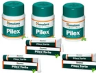 Himalaya Pilex 60 Tabs + Himalaya Pilex Forte Ointment (30g) : Himalaya Pilex Tablets : Action: Pilex tablet has hemostatic, anti-inflammatory, analgesic, antimicrobial, laxative, wound-healing, and antioxidant actions. Pilex tablet reduces the engorgement and turgidity of the veins and venous capillaries. The anti-inflammatory and anti-infective actions reduce inflammation, check infection, and promote healing. The laxative property of Pilex tablet corrects the chronic constipation associated with hemorrhoids. Key Ingredients : Neem Active constituents of Neem are known to have antimicrobial properties. Neem helps prevent secondary infection and promotes healthy healing in piles. Haritaki Chebulic myrobalan has anti-inflammatory properties, which help relieve pain and inflammation in condition of hemorrhoids/piles. The laxative property of Chebulic myrobalan helps relieve constipation associated with piles. Mesua ferrea Nagakeshar/M.ferrea is well known in traditional medicine for its hemostatic property. It helps control bleeding and assists in healing hemorrhoids/piles. Himalaya Pilex Forte Ointment : Action: Combats piles (hemorrhoids): Pilex shrinks pile mass, controls bleeding and heals inflamed skin and the mucus membrane. The drug offers symptomatic relief from rectal bleeding, pain, itchiness and corrects chronic constipation associated with hemorrhoids. Relieves pain: The local analgesic property of Pilex relieves pain and ensures pain-free fecal excretion. Antimicrobial: As an antimicrobial, it prevents secondary microbial infections in the body. Key Ingredients : Sensitive plant Sensitive plant (Lajjalu) has astringent and styptic properties that are beneficial in treating bleeding piles.