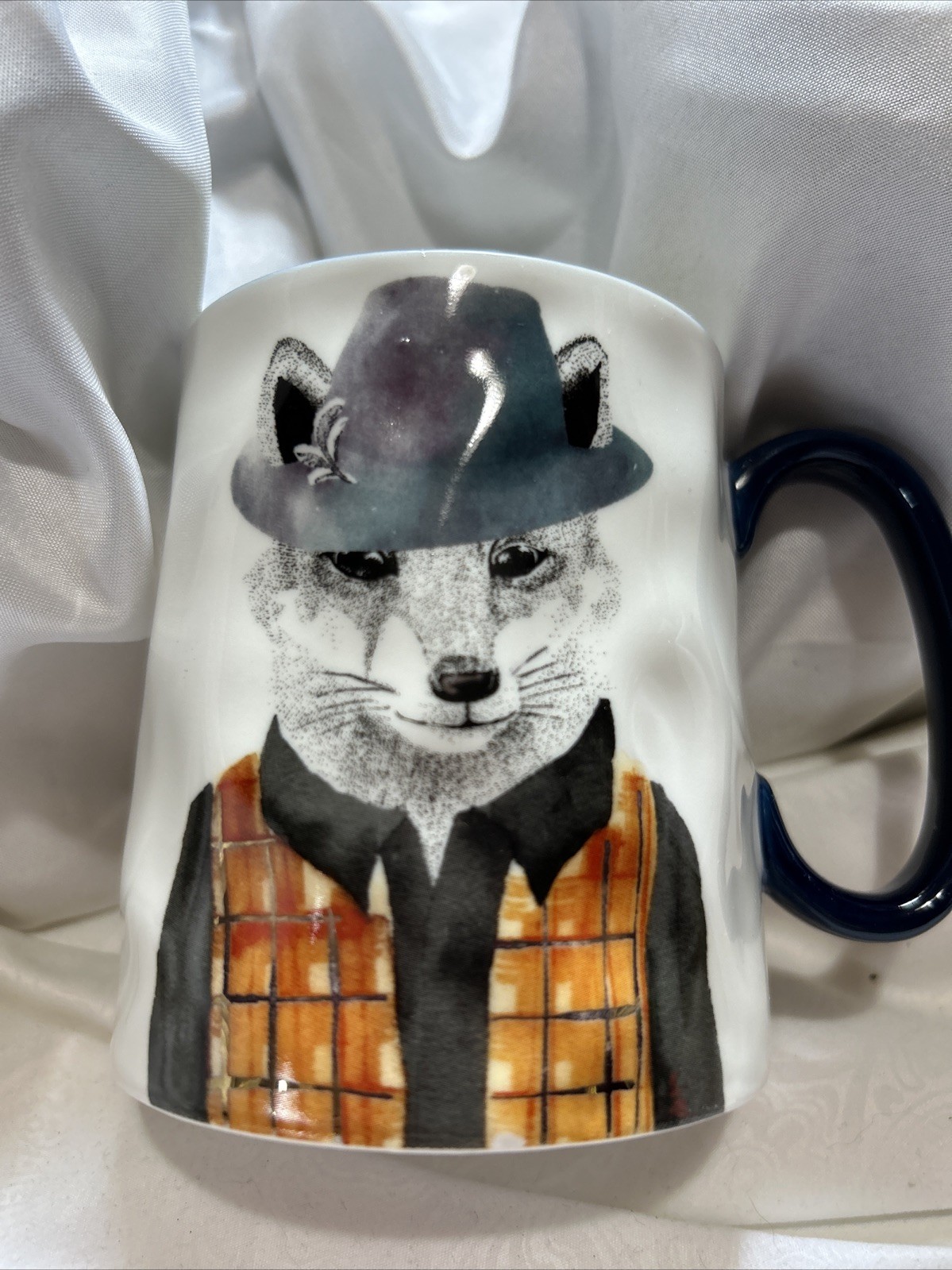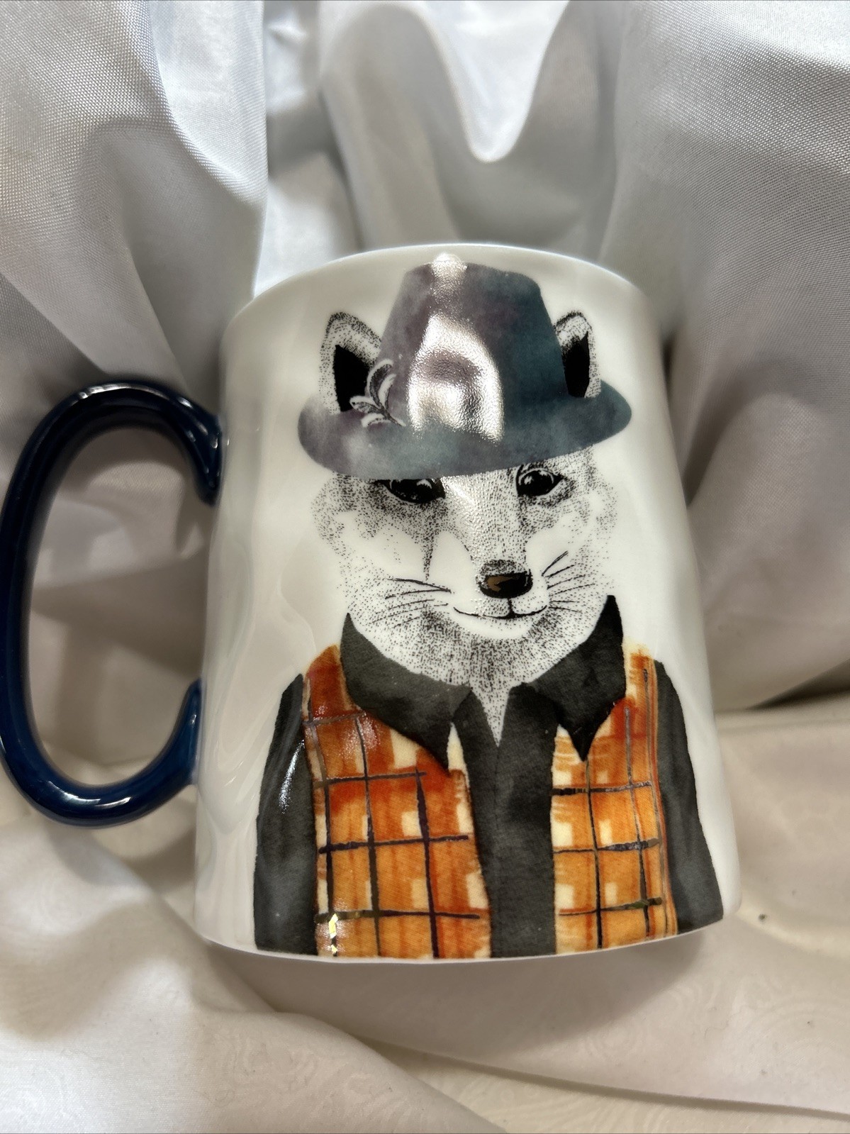 The Hipster Fox Coffee Mug Cup from Signature's Stoneware Collection is a 16-20 oz cup featuring a fun fox pattern. This versatile coffee mug is perfect for all occasions and can be used for both hot and cold beverages. Made from durable stoneware, this multicolor mug is sure to add a touch of whimsy to your kitchen or dining collection, making it a unique and charming addition for any animal lover. This cup has wavy sides that is like thumbprint style. Thanks for looking!
