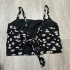 Hollister Black Floral Daisy Cropped Back Tie Spaghetti Strap Tank Top X-Small. Condition is Pre-owned. Shipped with USPS Ground Advantage.
