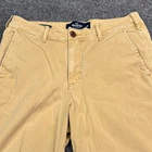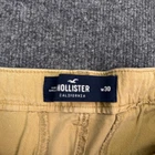 Personalize: No Style: Chino Handmade: No Features: Stretch Occasion: Casual Size Type: Regular Garment Care: Machine Washable Fit: Classic Fabric Wash: Light Theme: American Closure: Button Color: Beige Material: Cotton Brand: Hollister Front Type: Flat Front Fabric Type: Canvas Size: 30 Vintage: No Accents: Logo Pocket Type: Slash Pocket Season: Fall, Spring, Summer Waist Size: 30 in Department: Men Pattern: Solid