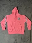 Rev up your style with this Hollister Motorcycle Week 2017 Hoodie. Featuring a pink graphic print with a scull character accent, this unisex hoodie is perfect for biker enthusiasts. The drawstring closure and hooded design add to its functionality, while the polyester and cotton material ensure comfort. The fleece fabric type and logo accents make this hoodie a great addition to your activewear collection. Whether you're hitting the road on your motorcycle or just hanging out with friends, this Esy Surf Co. brand hoodie is sure to turn heads. Available in size M, this pullover hoodie is suitable for both men and women.