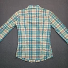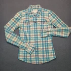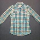 Hollister Pearl Snap Shirt Juniors Small Plaid Flip Cuff Western Stretch Womens Excellent pre-owned condition. No obvious flaws. See photos for measurements.