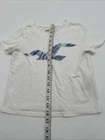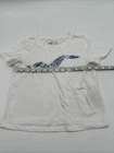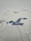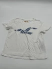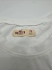 This Hollister T-Shirt for women is a classic piece that features a graphic print in white color. The short sleeve shirt is made of a blend of polyester and cotton material, making it easy to care for and comfortable to wear. It has a crew neckline and a regular fit, perfect for casual occasions. The pullover shirt is available in X-Small size and is designed by Hollister, a renowned brand. It is suitable for women who love basic style clothing with a classic theme. The shirt is manufactured in Guatemala and is a great addition to any wardrobe. *Check the images above for the flaws and measurements of the item.