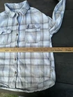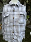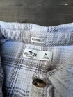 This is a Hollister women's plaid flannel shirt in size M with a boyfriend fit. It features a collared neckline, button closure, and long sleeves with a casual sleeve type. The shirt is made of 65% Viscose and 35% Polyester fabric, suitable for winter, fall, and spring seasons. It has easy care, pockets, and button accents with a classic lumbarjack theme, making it perfect for travel and casual wear.