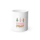 Holly jolly vibes color morphing mug that reveals a festive design when filled with a hot drink. Perfect for Christmas celebrations and gift-giving. Relevant to coffee and tea lovers who enjoy unique and fun drinkware. Product features - Vibrant colors for bright designs - 11oz size with black exterior and white interior - Microwave-safe for easy heating - Heat-sensitive design reveals image with hot drink - Glossy finish for a sleek look Care instructions - Hand wash only