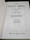 This is a hardcover padded Holy Bible in English, published by Thomas Nelson Inc. in 1976 in Nashville, Tennessee. It features giant print references and red letter text, with the author being Thomas Nelson Staff. The Bible is a reference book on Christianity with an original format, and it was manufactured in the United States.