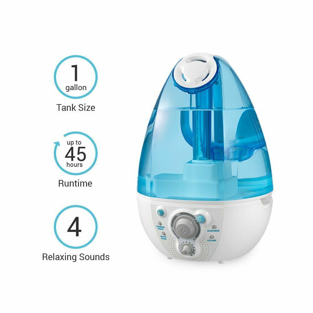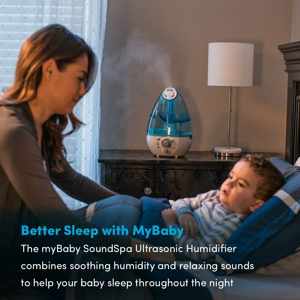 Ultrasonic Humidifier and White Noise Machine | Plays 4 Baby Lullaby Sounds, Calming Nightlight, Clean Tank Technology, 45 Hour Runtime, 1 Gallon Tank... Brand New Sealed Box. 4 SOOTHING LULLABY SOUNDS: Choose from 4 digitally recorded tranquil sounds: Heartbeat, White Noise, Summer Night and Lullaby. Add HoMedics MyBaby’s soothing noises to your baby’s sleep routine to help them fall asleep faster and stay asleep longer. The adjustable volume setting allows you mask background noise ensuring your baby gets a good night’s sleep or an uninterrupted nap. A sleeping baby means more sleep for the whole family! MULTI-USE HUMIDIFIER & SLEEP MACHINE: This one unit that has the function of 4 different devices! The MyBaby Humidifier features a soft illuminating nightlight, humidifier, air purifier, and white noise machine. Mist rooms up to 240 sq. ft. The 1-gallon tank has a run time of up to 45 hours. The ultrasonic purifier features a clean tank technology, preventing mold and mildew buildup. ALSO, choose from 4 relaxing sounds that will lull your baby into a deep sleep COMPACT & PORTABLE FOR TRAVEL: The MyBaby Humidifier is small and lightweight, it easily fits into any Mommy bag or suitcase. Bring it with you to create a familiar sleeping environment for your baby no matter where you travel! It measures 8.72" L x 8.68" W x 12.23" H and its cord is 6’ long CUSTOMIZABLE EXPERIENCE: The Ultrasonic Mister is completely customizable. Choose from its 4 lullaby sounds, turn the nightlight on or off, turn the volume louder or softer and increase or decrease the mist output. The therapeutic sounds can be used for relaxation, sleep, or travel. You can choose to play the relaxation sounds continuously, or choose from the auto-off timer which can be set for 15, 30, or 60 minutes to conserve energy WHAT’S INSIDE THE BOX: One MyBaby SoundSpa Ultrasonic Humidifier and White Noise Machine. One user’s manual. One 30-day money back guarantee. Technical Details Product Dimensions 8.72 x 8.68 x 12.23 inches Item model number MYB-W45 Is Discontinued By Manufacturer No Target gender Unisex Number Of Items 1 Batteries required No Item Weight 3 pounds Track Page Views With Auctiva's FREE Counter